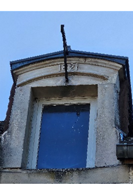 Lucarne d’une habitation de la Cour aux noyers indiquant la date de sa construction : 1821
